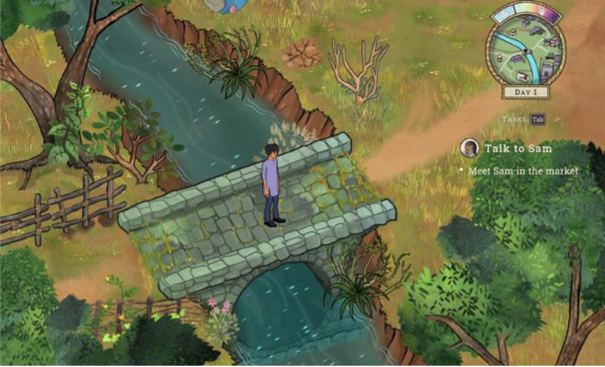 1、游戏以充满人文气息的印度乡村风光为底色,通过细腻的手绘美术风格和温暖的光影效果,生动呈现了田野、市集、古老宫殿等场景,营造出宁静而富有生活质感的独特氛围,让玩家沉浸于一个充满故事感的世界。
