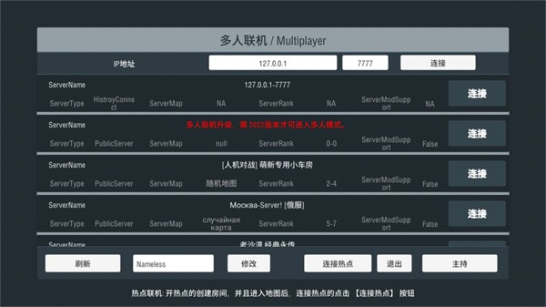 1、游戏中分为多人联机、单机、模具工坊,其中模具工坊需要手动下载;