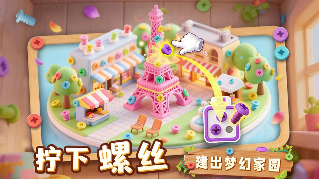 简单直接的解压体验:游戏操作极其简单,只需点击或滑动即可拧下螺丝。配合真实的物理音效和动画,每一次成功拆卸都能带来即时的解压快感。
