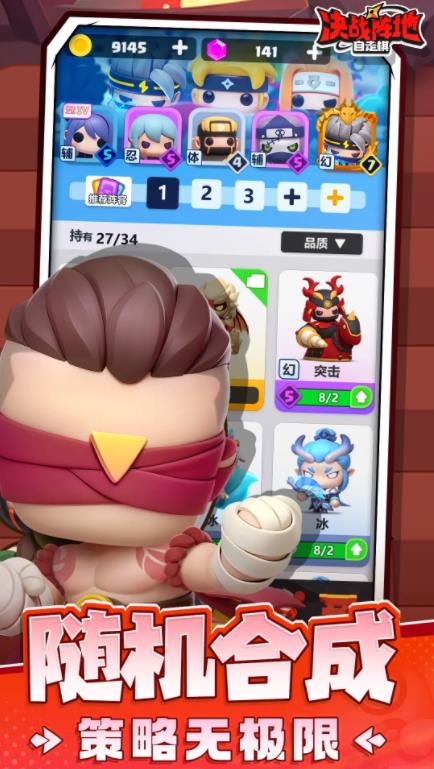 决战阵地1安卓版是一款忍者题材融合了Roguelike元素的策略性对战游戏,你将在每局对战里随机获取不同忍者角色开启你的战斗。决战阵地1安卓版中你需要把忍者合成以提升星级,然后合理搭配战场站位和功能各异的强化卷轴构建出一支独一无二的战斗阵容,最终依靠你的智慧击败所有对手体验高随机性带来的紧凑对战乐趣,有兴趣的朋友赶紧来决战阵地1安卓版打造出专属你的无敌忍者军团开启你的竞技之旅吧。