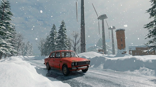 环境交互真实细致:积雪影响行车轨迹,寒冷加速体力消耗,天气变化直接作用于角色与车辆状态。