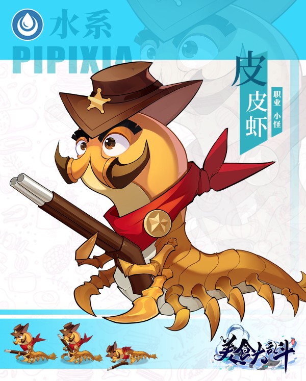 被邪恶之力污染的大量食灵之一,拥有一把泡过水之后也可以正常使用的枪,围巾上的星星是皮皮虾一族实力的证明。