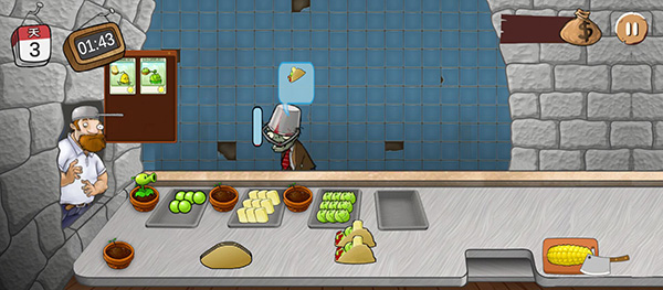 5、每一个僵尸都有一个耐心值,在耐心消耗完之前把沙威玛给僵尸就可以获得金币。