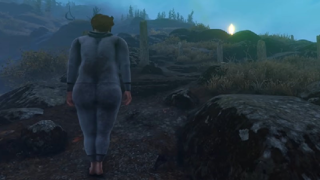 2.角色继续前进,在布满苔藓的岩石地形上保持平衡,动作谨慎,显示出对复杂地形的适应与探索。
