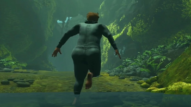 1.角色在一片幽暗的丛林中奔跑,周围是茂密的植被和湿滑的地面,环境显得神秘而充满未知,需小心前行。