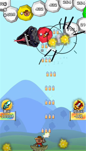 4、等到第二个选项出现的时候,再移动到左边射击,前期攻速特别的重要,可以很容易得到10攻速。