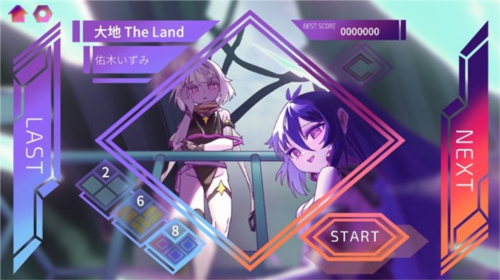 4.完成一首曲目后,返回曲目选择界面,可看到下一首歌曲《大地The Land》由佐木いずみ演唱,点击“START”继续挑战。