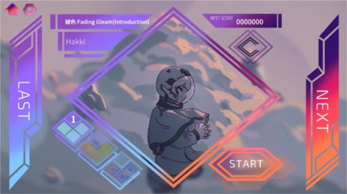 2.进入曲目选择界面,当前显示的是歌曲《褪色Fading Gleam(Introduction)》,由Hakki演唱,点击“START”按钮即可开始游玩该曲目。