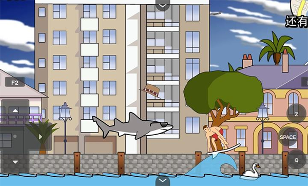 2、先来熟悉一下基本的操控,左边方向键可控制鲨鱼移动,向下游,然后突然往上就可以游得更快。