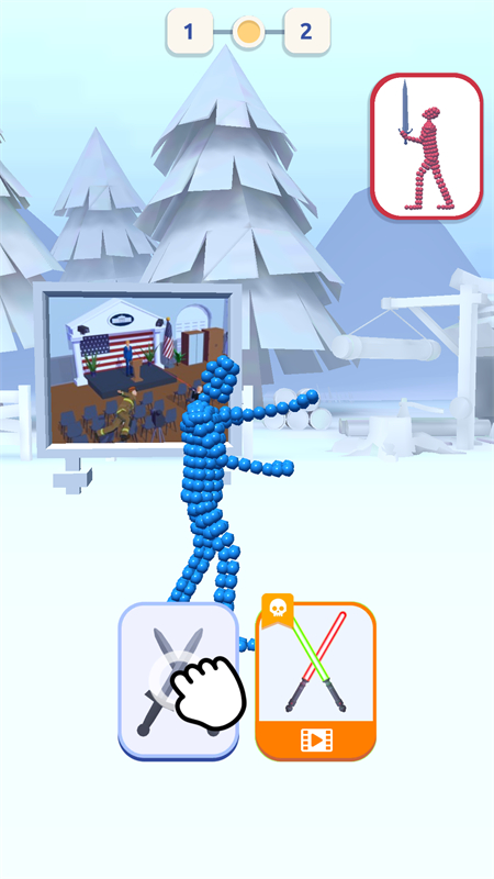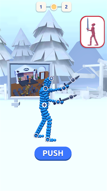 1.通过拖动调整角色各关节,摆出独特且扭曲的搞怪战斗姿势,操作魔性