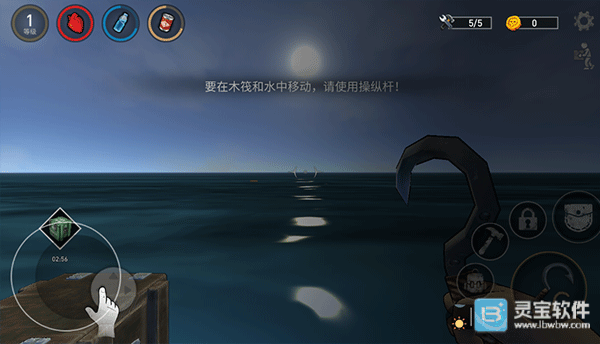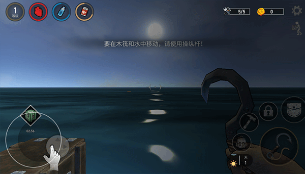 2、要在木筏和水中移动,使用操纵杆就能够进行操作了!