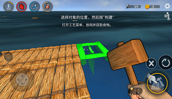 8、接着选择对象的位置,然后按"构建”打开工艺菜单,放网并获取食物,完成任务后可以获得资源奖励。