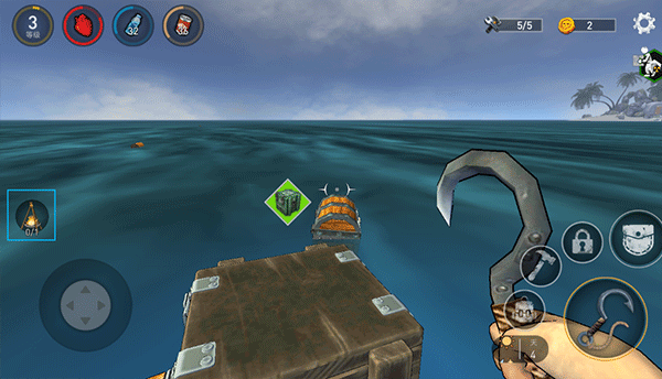 2、核心循环紧扣“收集-建造-扩展”的生存逻辑,玩家通过打捞海洋垃圾获取基础材料,并以此逐步解锁更高级的工具、设备乃至扩建木筏平台,生存条件的改善完全依赖于玩家的主动劳作与规划。