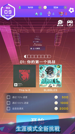 3.每首歌曲均设计3种挑战难度,并设有生涯模式,歌曲随机组合呈现。