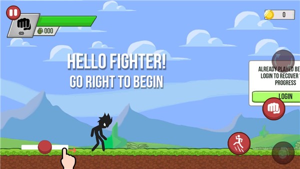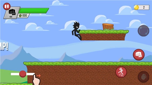 2、我们可以通过手指位置左右移动,右边按钮可进行攻击和跳跃。