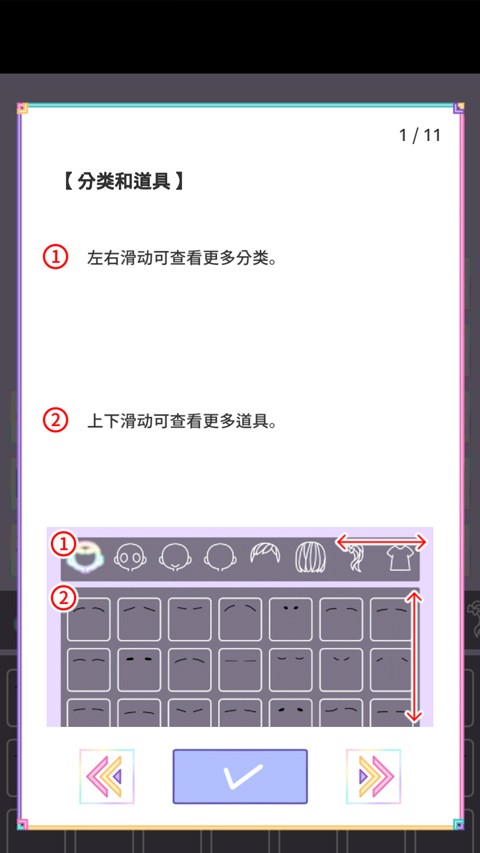 3、之后便可在下方左右滑动选择喜欢的服饰、道具等;