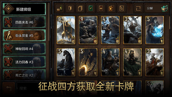 3.单位卡分为近战、远程、攻城三排,需结合天气卡与法术卡灵活布局