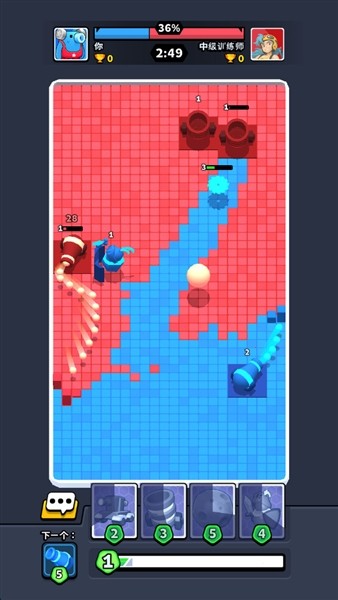 1.游戏初始阶段会触发新手引导,玩家需操控蓝色阵营完成对红色领地的征服。