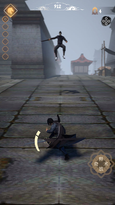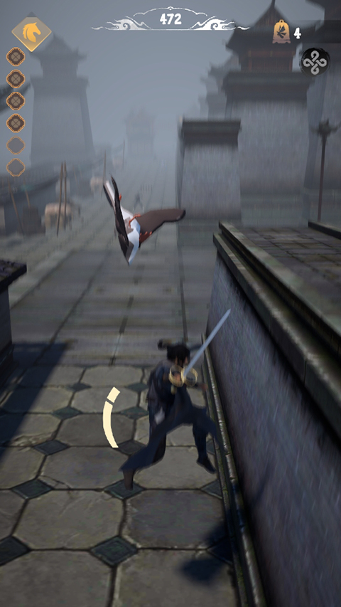 1.将武侠轻功与跑酷玩法结合,玩家在飞檐走壁间可施展翻墙、悬空踏步等轻功技巧,体验飘逸的江湖身法。