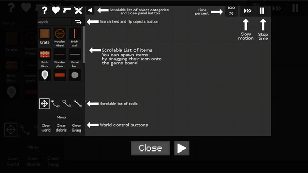 1、游戏提供了极高的物理交互自由度,玩家可以在沙盒环境中使用各种工具和元素进行创造或破坏,实现对场景和物体的完全掌控,满足探索与发泄的双重需求。