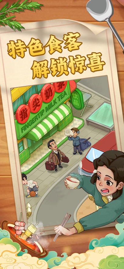1、游戏描绘了一条完整的餐饮业成长弧线,让玩家亲身体验从街头小摊开始,通过努力经营、策略规划,最终建立起庞大美食商业帝国的全过程,代入感强烈。