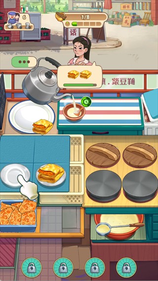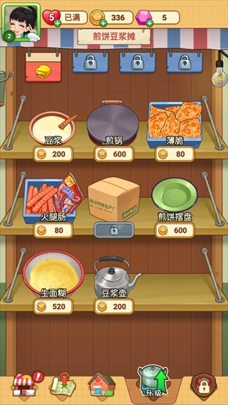使用金币升级豆浆机、煎锅等厨具,提高烹饪效率与菜品质量,建议优先升级煎锅和豆浆机等核心设备,缩短烹饪时间,减少顾客等待,从而提高出餐效率。