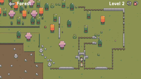 3、到【Level3】,移动至箭头指向的棕色区域触发机关将方框内石头进行移动,保持道路通畅。