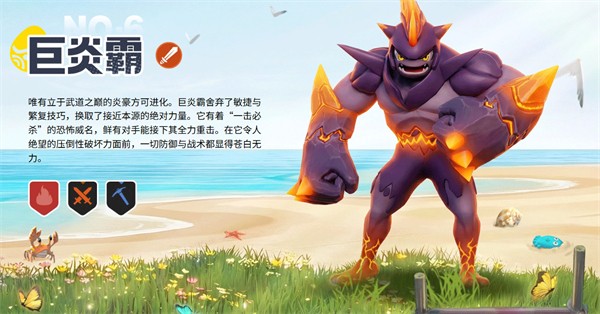 唯有立于武道之巅的炎豪方可进化。巨炎霸舍弃了敏捷与繁复技巧,换取了接近本源的绝对力量。
