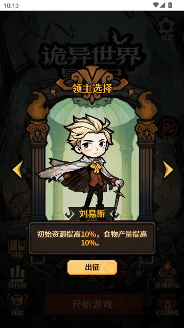 2.在领主选择界面,选择角色“刘易斯”,该角色初始资源和食物产量均提升10%,点击“出征”按钮进入游戏。