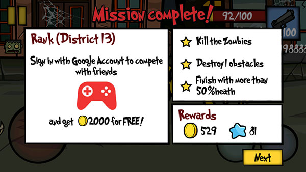 击杀完关卡目标数量的僵尸即可获得胜利。