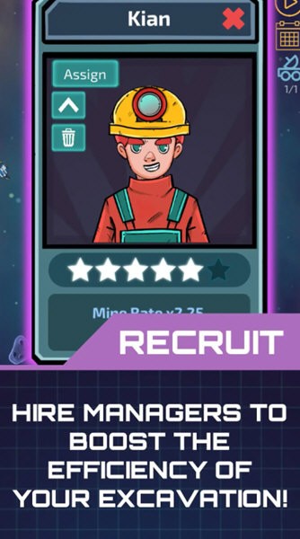 1.轻松休闲的放置点击玩法,通过简单操作即可跨星系开采稀有资源