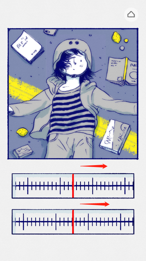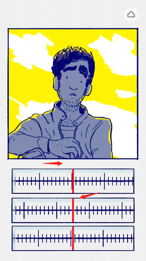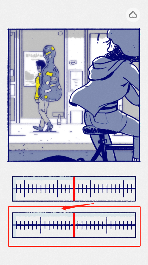 2、故事开头,女主看到后面有车来了,画面很不清晰,让我们把上面的刻度向右滑,直至肉眼看着最清楚的那个位置,一般都为刻度的最长的那根线或者中间的那根线,下面那个刻度尺向左滑,整个画面都高清后,就会进入下个画面。