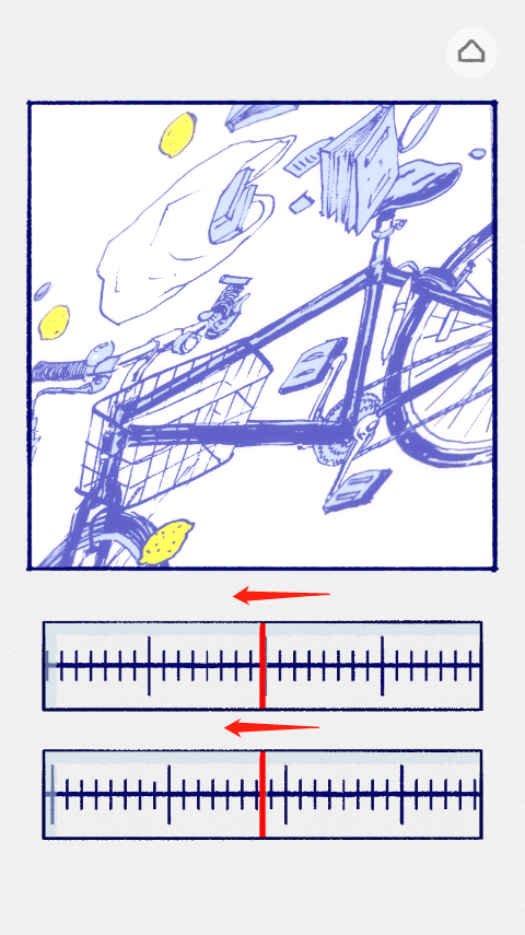 3、我们把上面的刻度向左滑直到画面清楚,下面那个刻度尺同上操作,最后我们可以看清画面了,女主被撞翻啦,自行车,书本都要洒落啦。