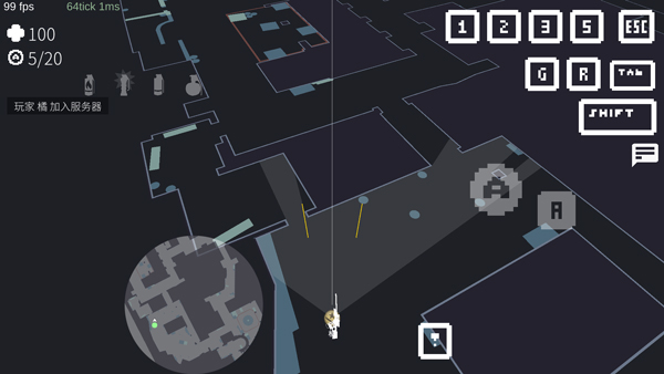 5、等待房主开始后即可进入游戏,玩家需通过俯视角来操作角色移动射击。