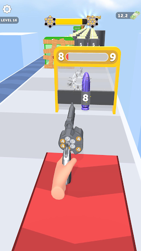 左轮冲锋是一款是一款休闲射击闯关手游。玩家操控一把左轮手枪,在跑酷赛道中不断前进。你需要射击障碍物和门,击中不同目标可获得不同的加成效果,包括子弹数量增加、弹药容量提升、威力增强等。关卡包含普通士兵、特种部队、巨型怪物等敌人类型,设有特殊BOSS关卡,需要寻找弱点制定战术。地图场景涵盖城市街道、丛林、废弃工厂等。
