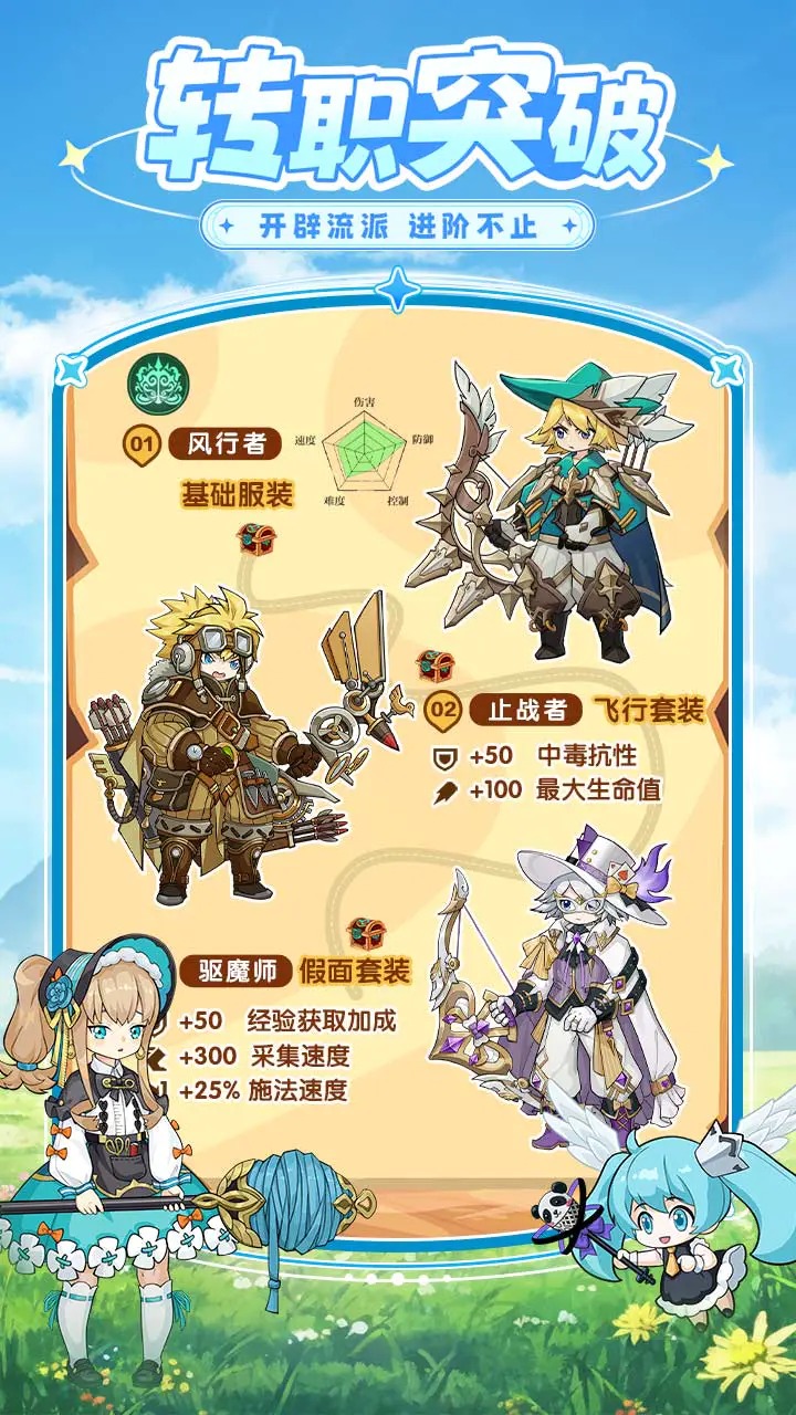 六、转职:当冒险者达到一定等级后,可进行转职;目前游戏有:法师、战士2个职业;后续还会开放更多职业哦~