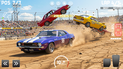 采用先进的物理碰撞引擎,每一辆车都会根据撞击角度和速度产生真实变形。从侧面撞击会导致车门凹陷,正面硬刚会让车头溃缩,高速侧撞可能直接让对手翻车。