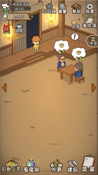 1、首先面对来客,按照客人的需求进行上餐,只要点击客人头顶的符号即可,吃完会留下钞票,还有概率拿到客人的小费。