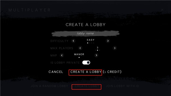 3、也可以点击create lobby,选择好房间的难度,人数点击创建房间即可;