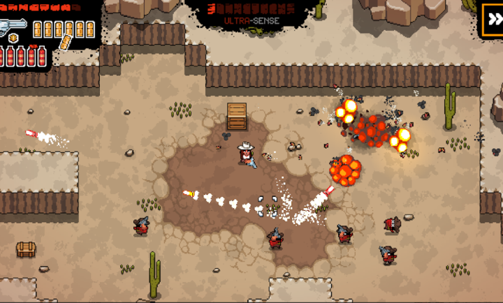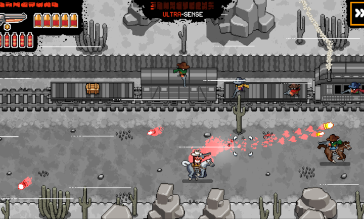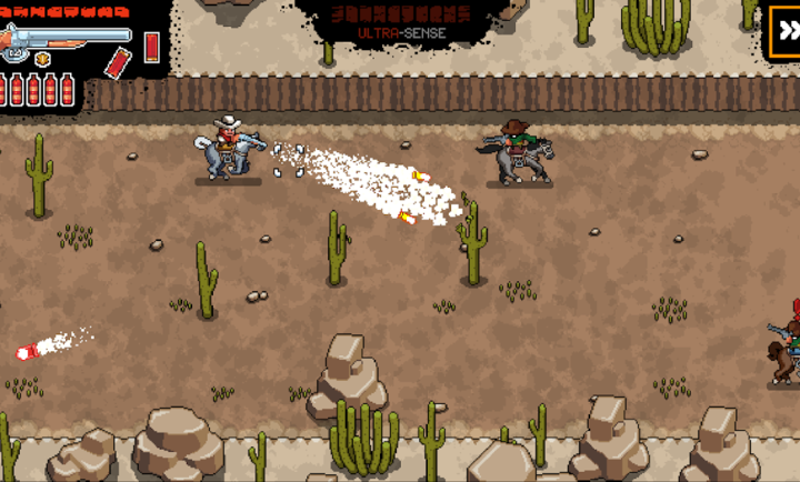 画面是那种老式像素风,看着就想起小时候玩的街机游戏,西部氛围特别足。