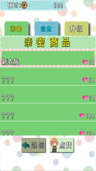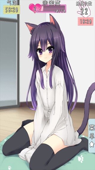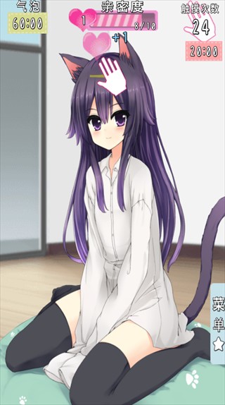 用手指触摸猫耳少女的头,亲密度会逐渐上升。当亲密度足够时,新的外出项目就会解锁。