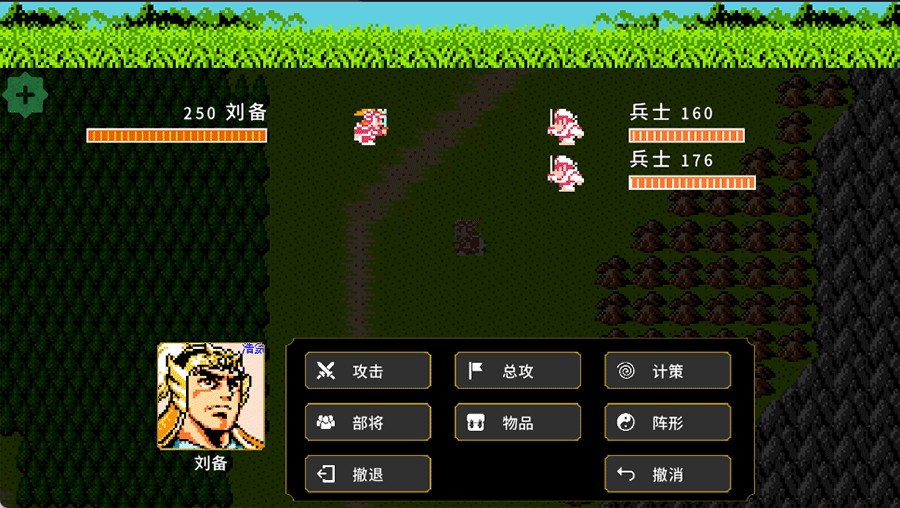 刘蜀霸业的战斗不是无脑堆数值,武将战斗力看兵力,军师看谋略值,还要考虑阵型、计策、地形。总攻击可以全武将合击,策略选项能放阵法陷阱,玩起来很有吞食天地原汁原味的感觉。