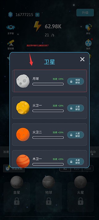 1、月球是地球的卫星,玩家要解锁月球的话首先需要解锁地球并且把地球创造出来;