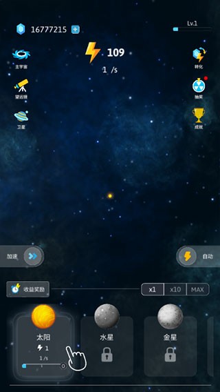 6、最后通过玩家不断地点击建造,解锁全部星系,创造一个属于自己的宇宙。