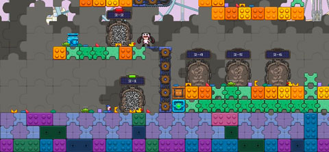 从2-1开始难度增加,并且本关首次出现了传送带,通关本关的要点就在于幻象的位置,幻象不但可以用来挡激光,还可以当作支撑物。