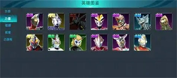 能量型英雄:拥有强大的范围型 aoe 技能,是清场的完美选择。如传说级的佐格,拥有天使和恶魔两种形态切换,天使形态有被动吸血效果增强生存能力,恶魔形态则可加强攻击能力,但需注意恶魔形态释放技能会扣除总生命值。史诗级的迪迦奥特曼可通过切换皮肤改变属性,能适应更多战场。稀有级的红莲火焰能打能突,但初始属性较低,是过渡英雄。