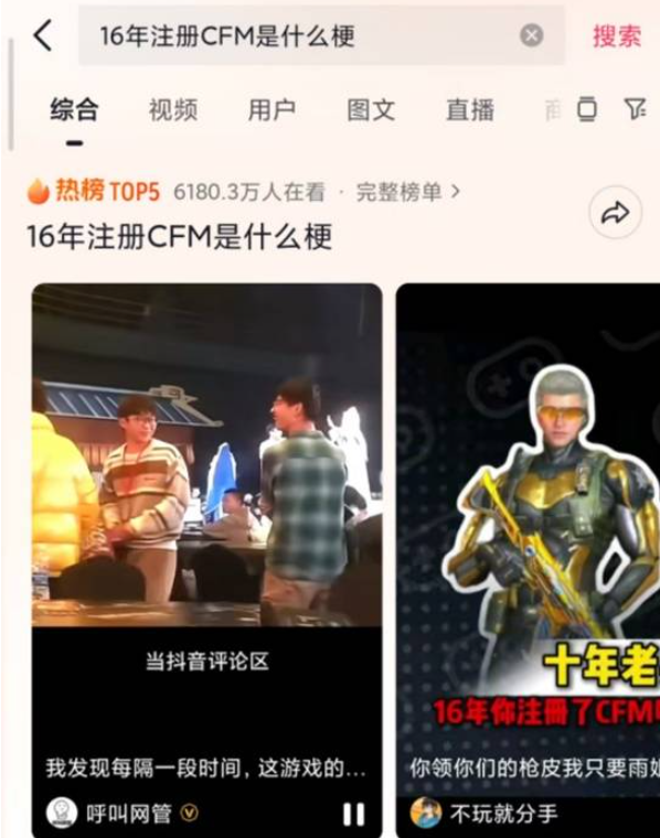 此外,CF手游还与《铠甲勇士》、《吞噬星空》等玩家喜爱的动漫、小说IP频频联动,誓要将“整活”进行到底,玩家也乐于参与其中,自发进行二次创作、玩梗传播,使得游戏始终保持着旺盛的活力与热度。例如近期“十年老兵”福利资格标准公布后,“16年你注册CFM了吗”迅速成为玩家间的社交暗号,相关话题在抖音等平台登上热搜前列,玩家与产品之间紧密的情感连接与活跃的社区生命力显露无遗。